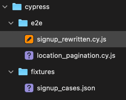 - Update signup spec (`signup_rewritten.cy.js`) to consume same fixture.