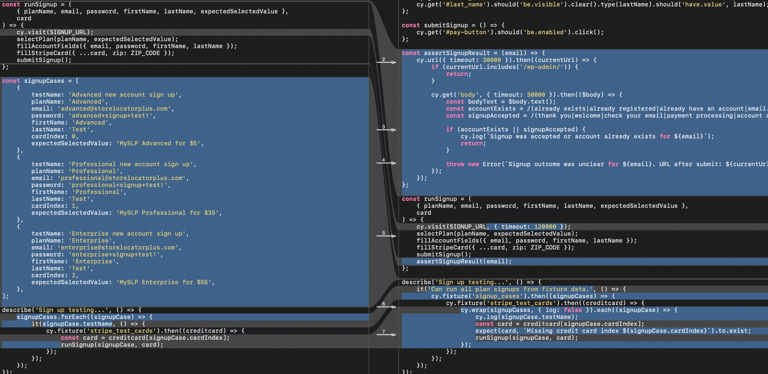 - Move hard-coded signup account cases into a fixture (suggested: `cypress/fixtures/signup_cases.json`) if not already done.