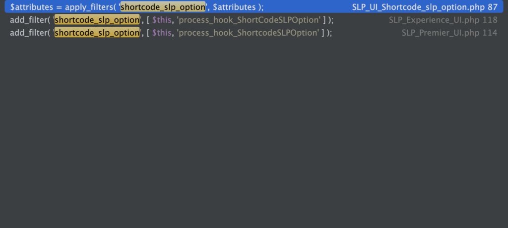 SLP filter shortcode_slp_option references