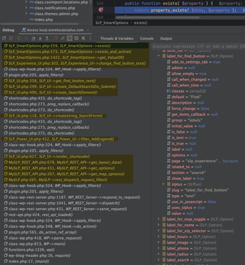 - This text is also changed via a WP hook/filter ‘slp_find_button_text‘