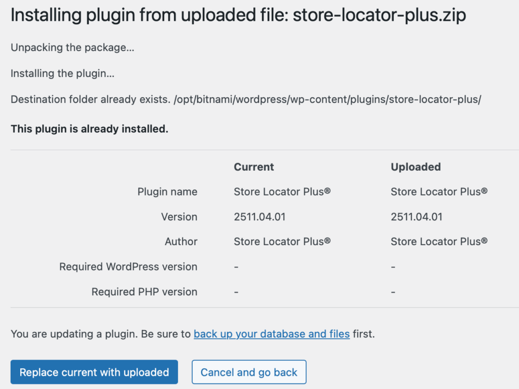 If the user uploads this file to the WordPress installation it will create a NEW installation of the Power plugin at ./wp-content/plugins/slp-power-2/. This may or may not reside alongside a version of the older installation at ./wp-content/plugins/slp-power/ which is the standard installation path.